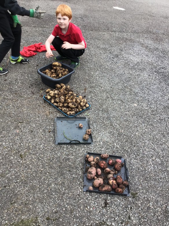 P5/6 were hard at work this month and harvested our school potatoes. I hope you enjoyed them at home!