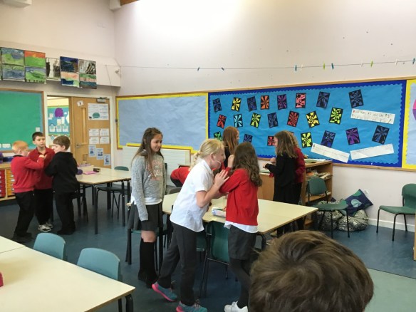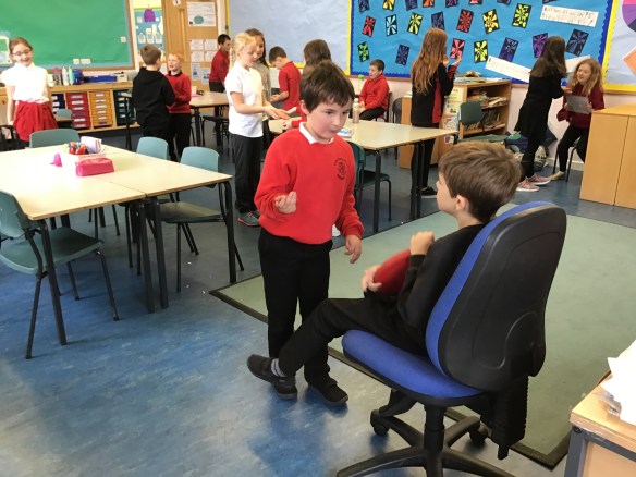We had a fantastic visit from Louisa from the Dramabox. We enjoyed being creative and expressing ourselves through Drama activities including creating shapes and acting out “Excuse me, is this your beetle?” We showed great improvisation,cooperative and creativity skills through these activities. Well done P5/6!