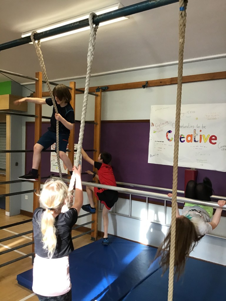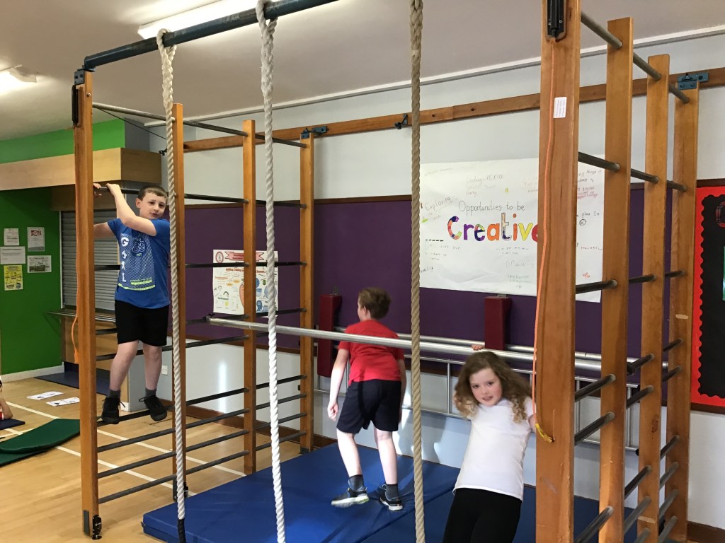 P5/6 have been exploring, creating and improving their gymnastic skills! It is always an exciting time when the wall bars come out. We have all used the ropes, bar and ladder. We have also worked on movement sequences with our partner. Miss MacDonald was very impressed with our creativity and bravery!