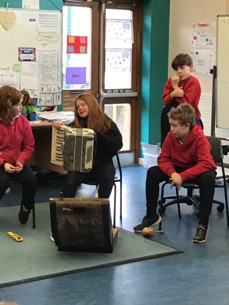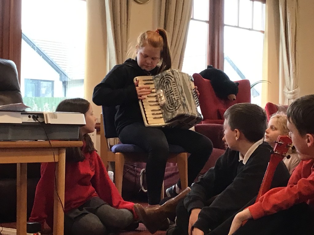 We had a super ceilidh at the Care Centre yesterday. We went down to share some of our songs related to our topic of ‘The Jacobites’ as well as playing percussion instruments, the accordion, keyboard and chanter! Our fantastic set of drummers made sure we kept in time to the beat! Fantastic job everyone!