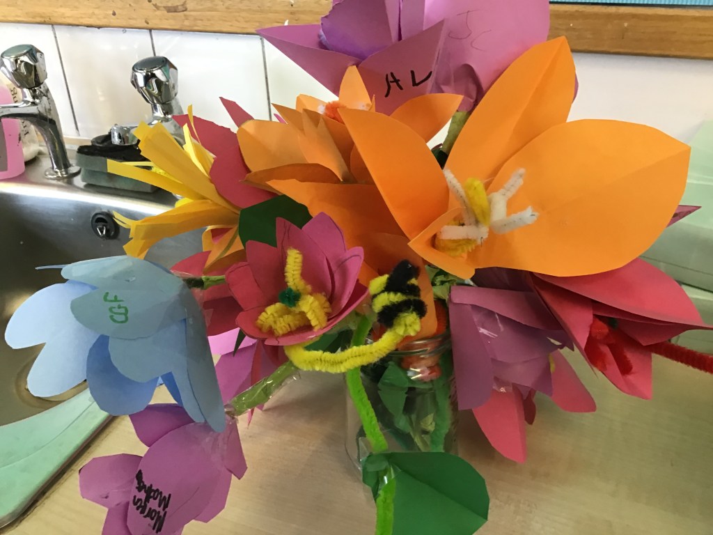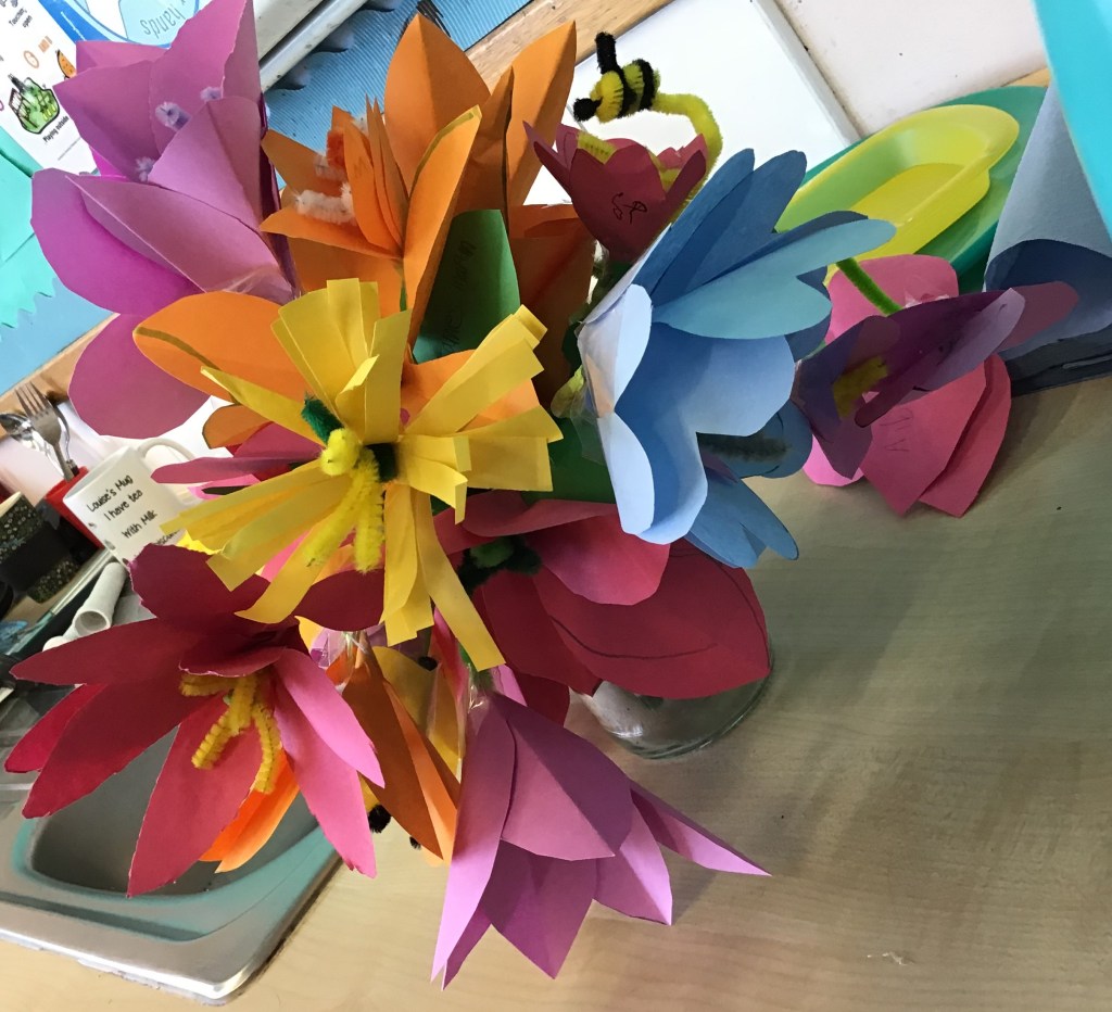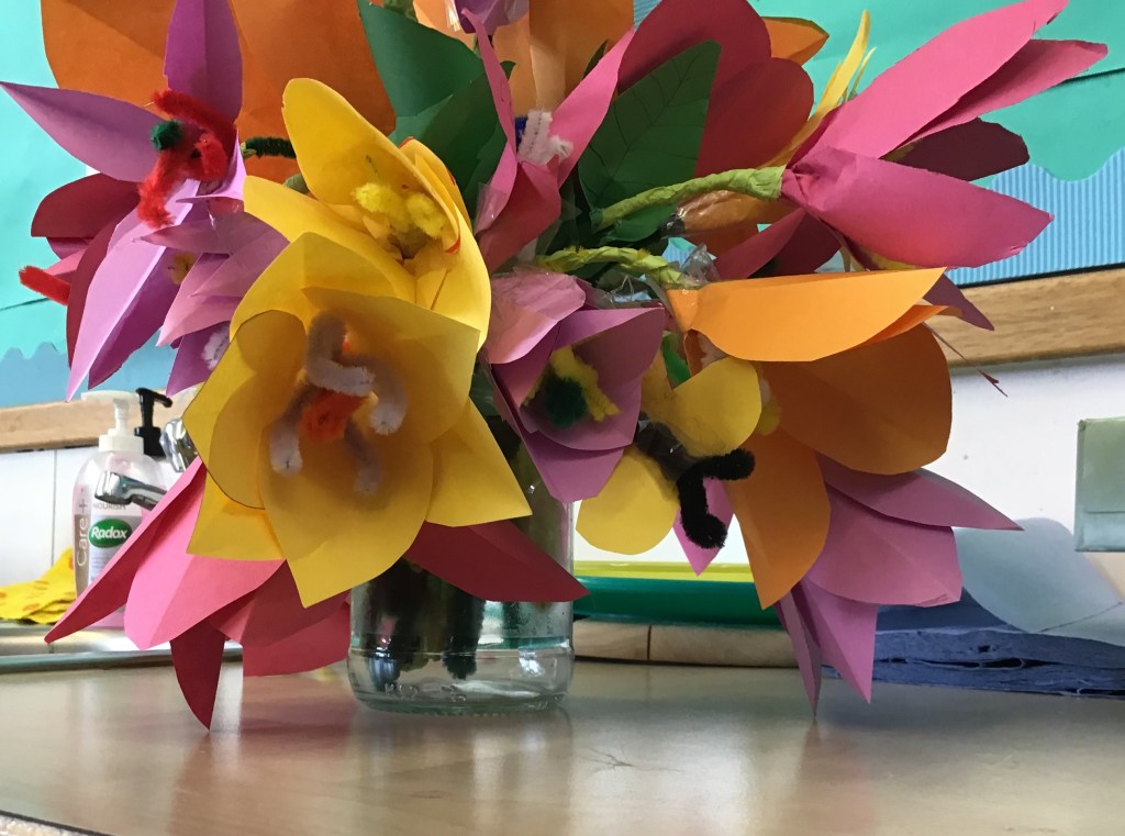 Look at the lovely flowers I have on my desk ~ made by P5/6 pupils showing the different parts of a flower.